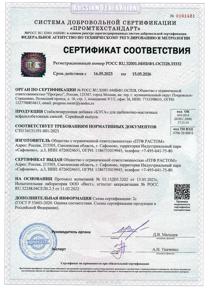 - Стабилизирующая добавка применяется для приготовления щебеночно- мастичных асфальтобетонных смесей, производимых по ГОСТ 31015-2002, ГОСТ Р 58401.2- 2019, ГОСТ Р 58406.1-2020, так и для всех иных типов асфальтобетонных смесей, регламентируемых другими нормативными документами, включая стандарты организаций и технические условия, для повышения физико-механических и технологических свойств асфальтобетонных смесей и асфальтобетона.